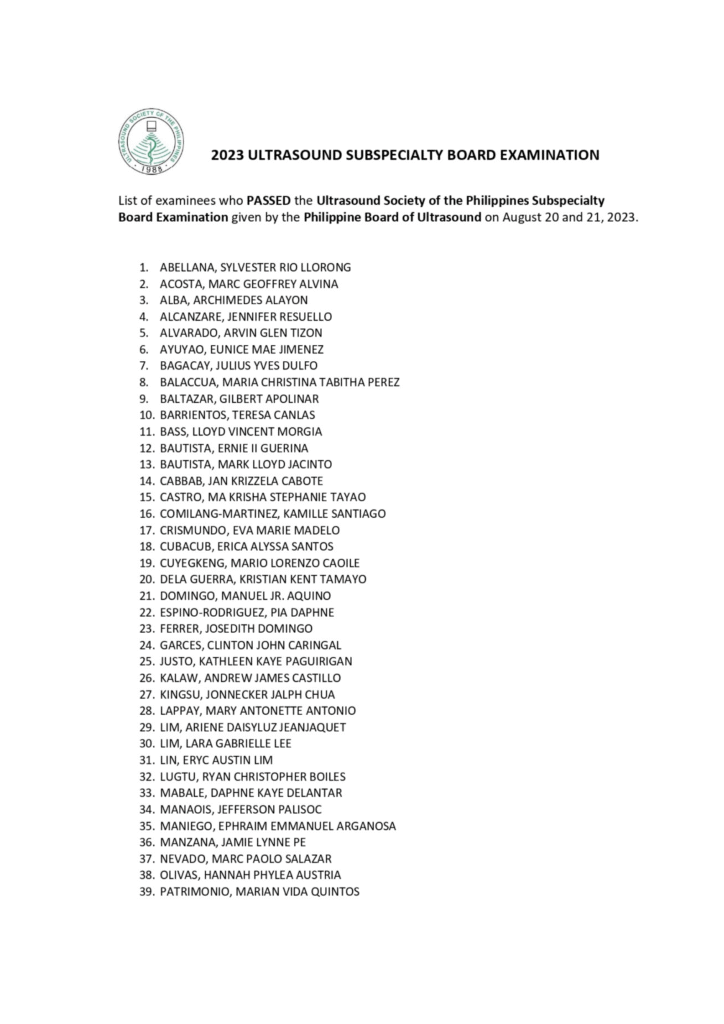 PHILIPPINE BOARD OF ULTRASOUND 2023